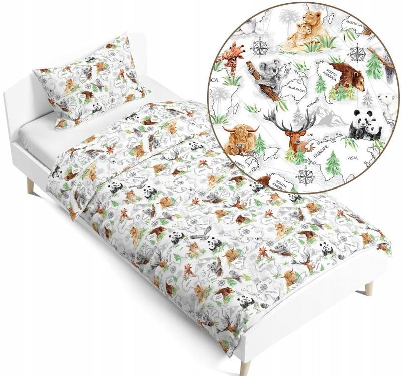 100% Organic Cotton Bedding Set – 140x200 cm Duvet Cover for Single Bed Continents