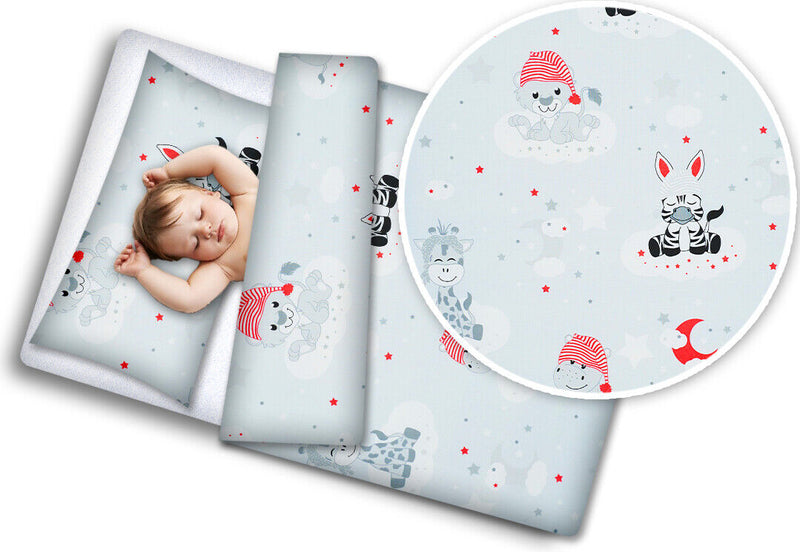 2pc Baby Filled Bedding Set Duvet Pillow 100% Cotton For Cotbed 135x100 Sweet Animals Grey