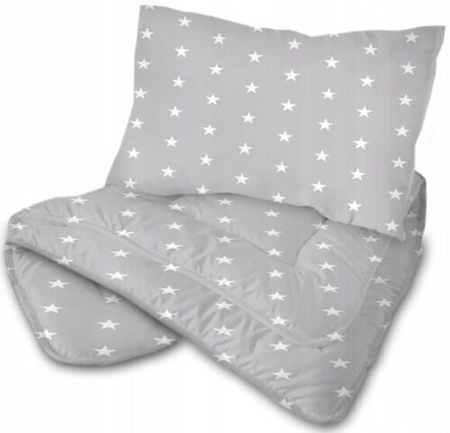 2pc Baby Filled Bedding Set Duvet Pillow 100% Cotton For Cotbed 135x100cm Small White on Grey