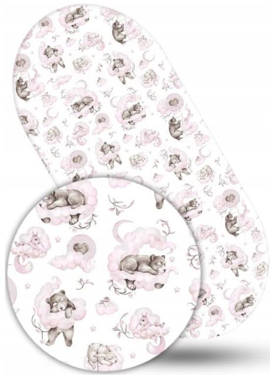 80x38cm Fitted Sheet for Baby Moses Basket Pram 100% Cotton Pink Bears
