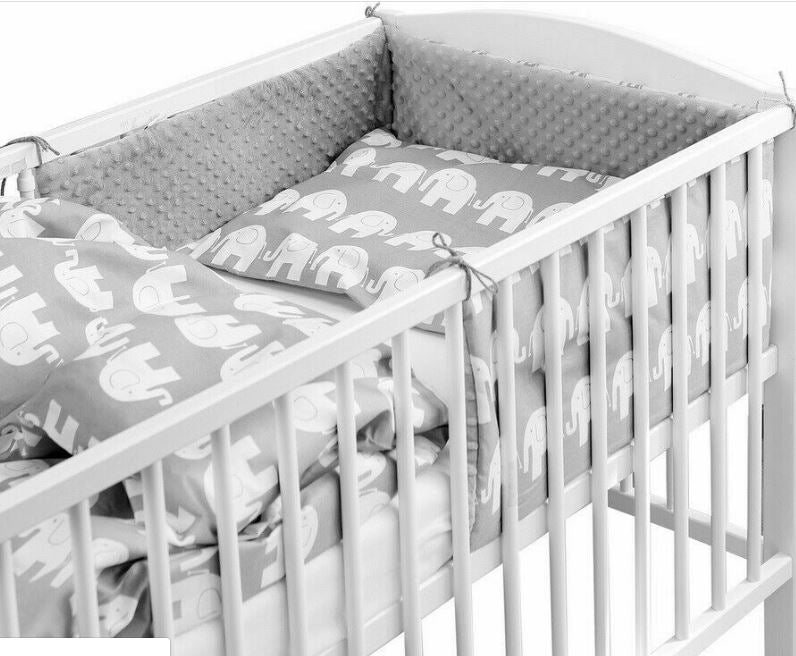 Baby 6Pc Dimple Bedding Set Pillow Duvet Quilt Sheet Bumper Fit Cotbed 140X70cm Dimple Grey/ Grey Elephants