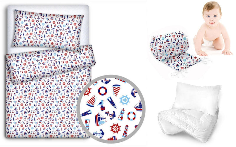 Baby bedding set 5pc nursery cotton pillow duvet bumper 70x80cm Marine