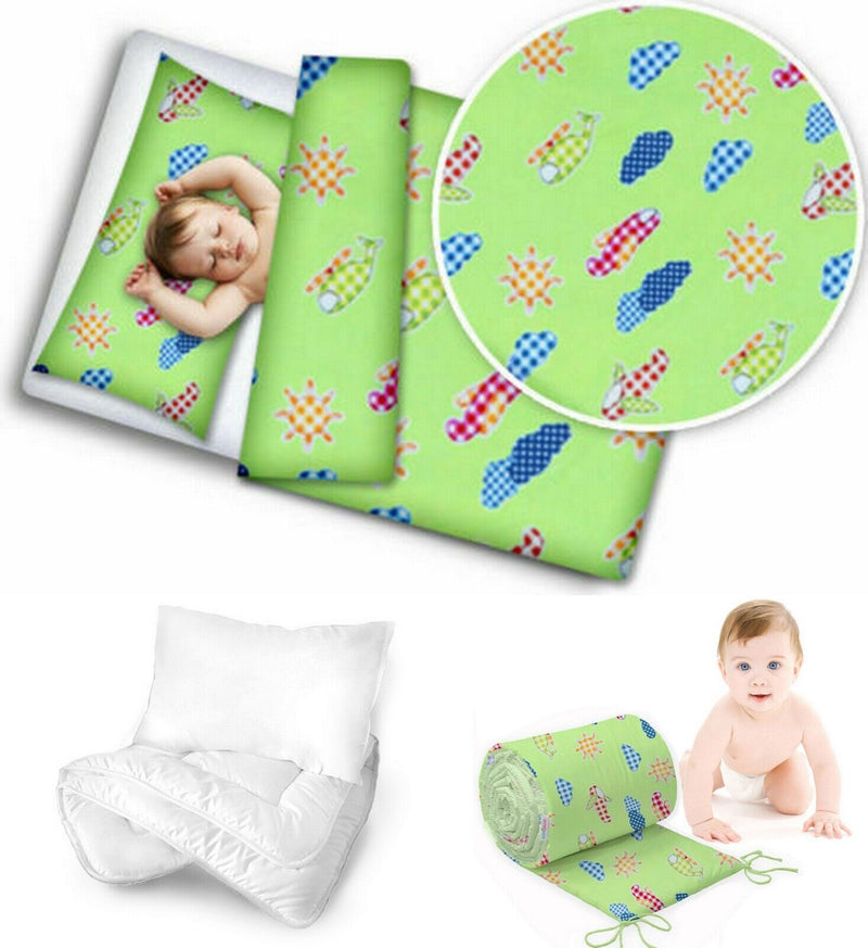 Baby bedding set 5pc nursery cotton pillow duvet bumper 70x80cm Planes green