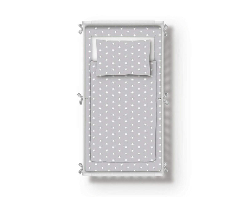 Baby Bedding Set 6pc All-round Bumper Fit Cot 120x60cm 100% Cotton Small White on Grey