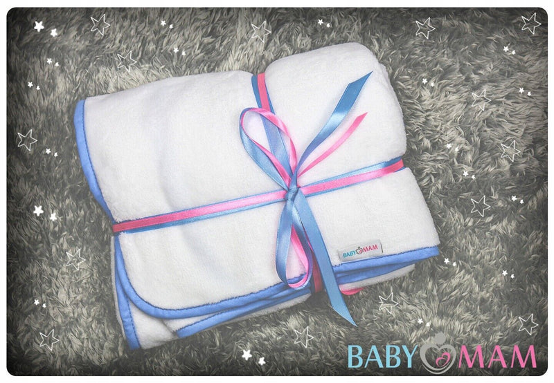 Baby blanket Super soft plush infant nursery cosy baby gift 75x100cm - White/Blue