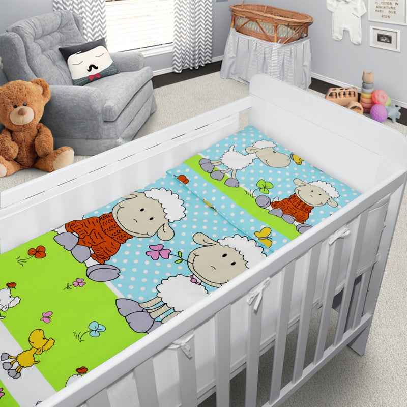 Baby Cot Bedding Set 5Pc Fit Cot 120x60cm Sheep Turquiose