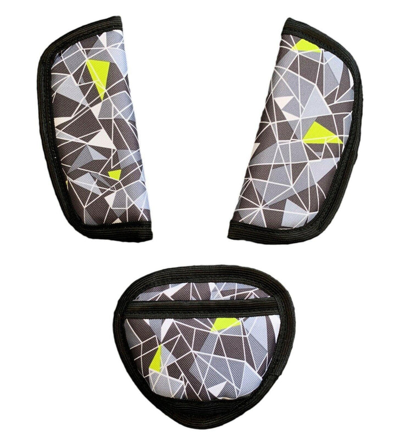 Baby Crotch Straps Pad Car Seat Belt Cover Harness Grey/Green Triangles