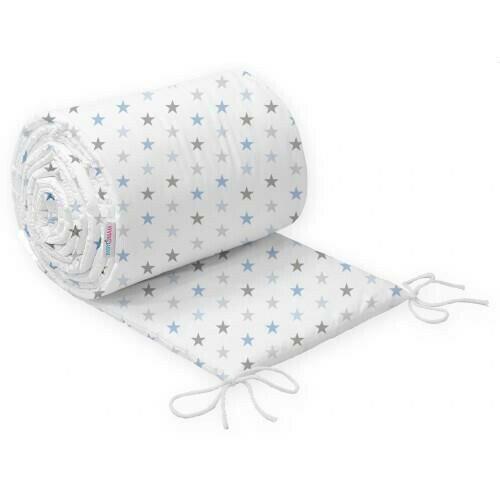 Baby Padded Bumper 100% Cotton To Fit Crib All Round 260cm Grey Blue Stars