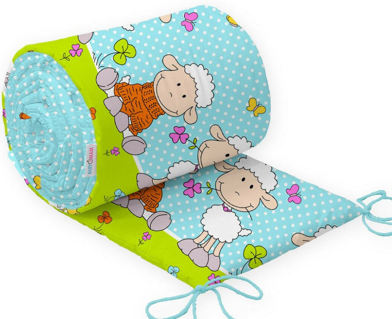Baby Padded Bumper 100% Cotton To Fit Crib All Round 260cm Sheep Turquoise