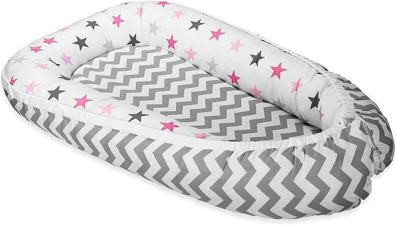 Baby Soft Cocoon Infant Reversible Sleep Nest Zig Zag/Pink Grey Stars