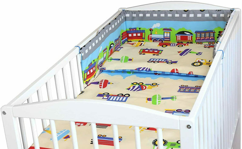 Baby Trucks 3Pc Bedding Set Cotton Pillow Duvet Bumper Fit Cot 120x60cm