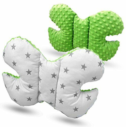 Butterfly Dimple Pillow Baby head and neck support Green - small grey stars on white