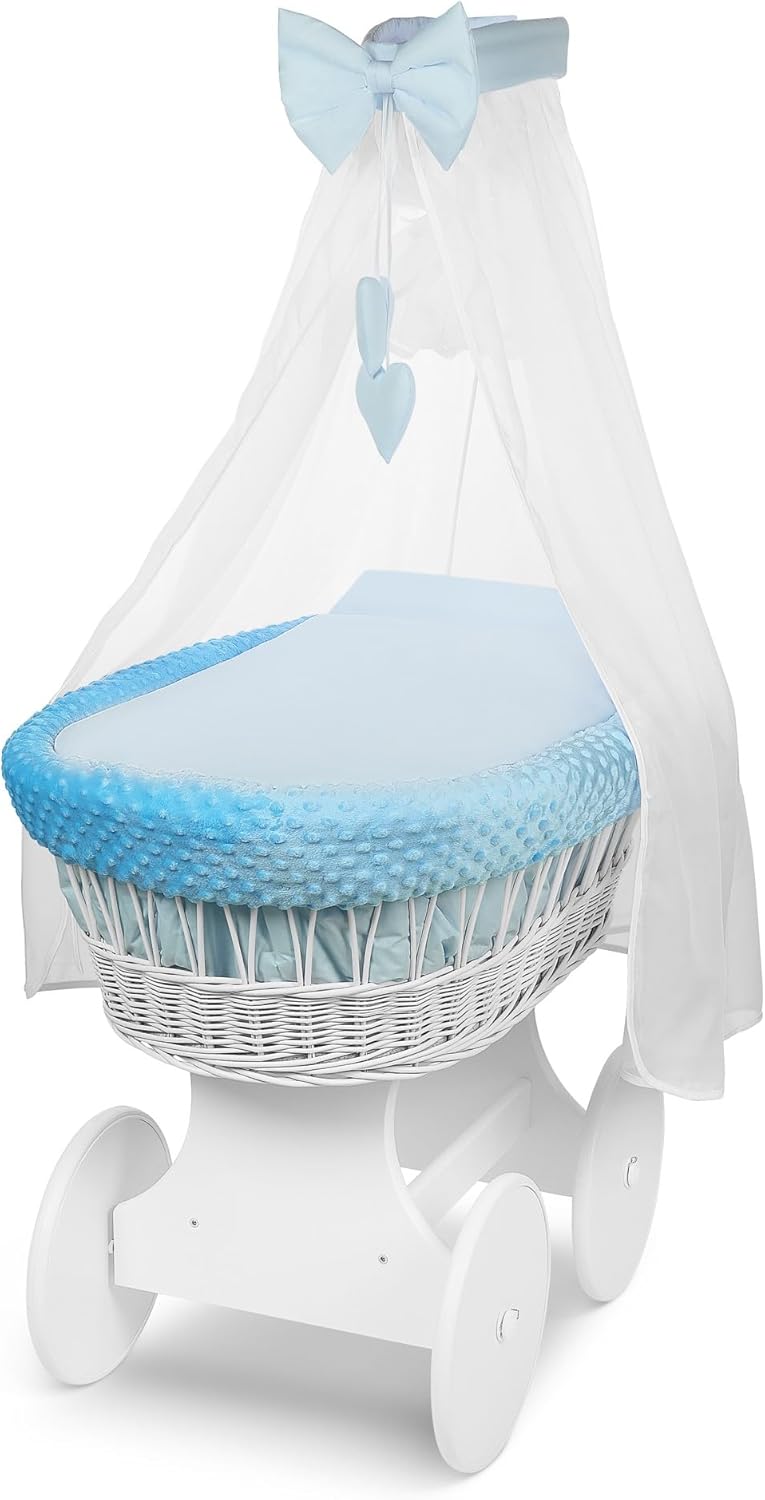 Full Bedding Set With Canopy To Fit Wicker Moses Basket Dimple Blue