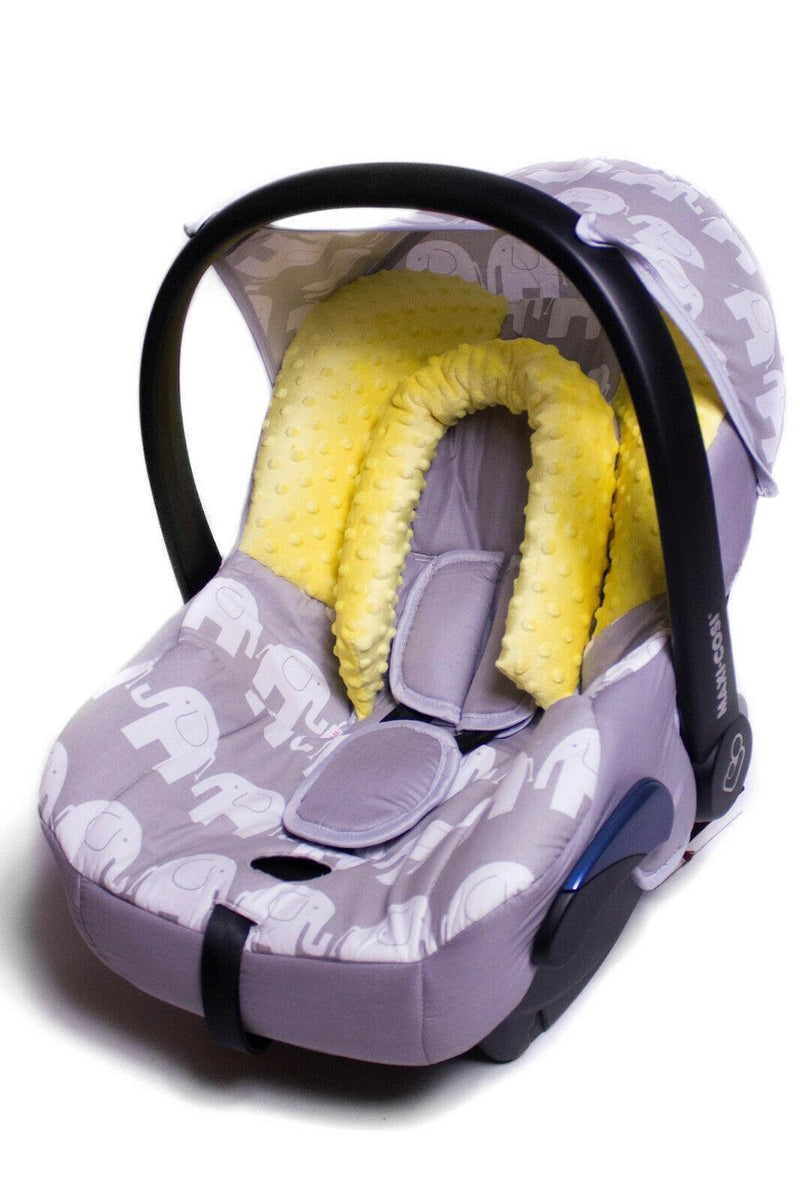 Full Cover Set Fitting Maxi Cosi Cabriofix Baby Car Seat - Elephants Grey / Yellow