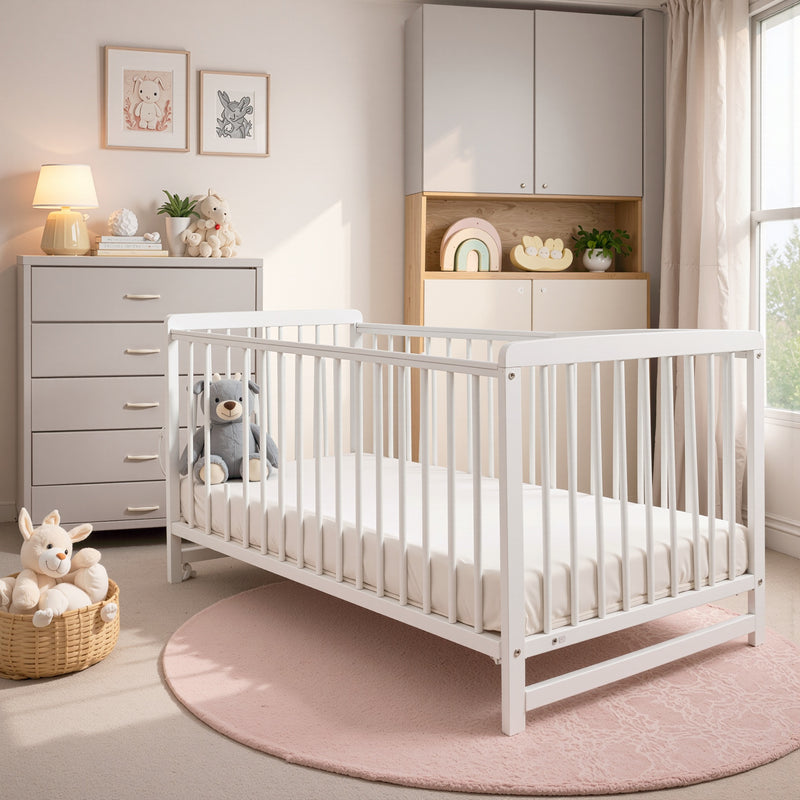 Luxury Baby Cot Crib Bed Free Mattress 120x60cm Newborn White