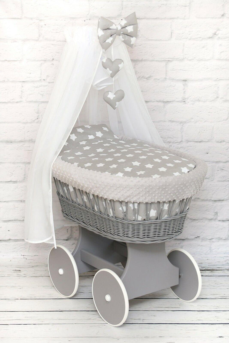 Moses Wicker Basket Full Set Bedding Set Canopy Grey/Big stars on Grey dimple